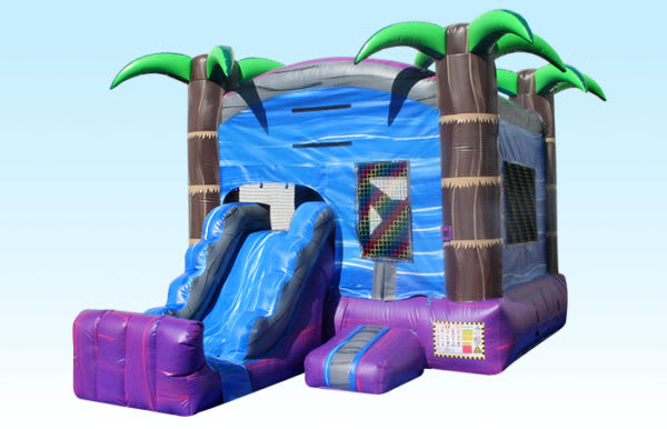 Our 22 Ft Tropical Combo is perfect for an Hawaiian or Yropical themed party! This combo includes a bounce house, basketball hoop, and slide!