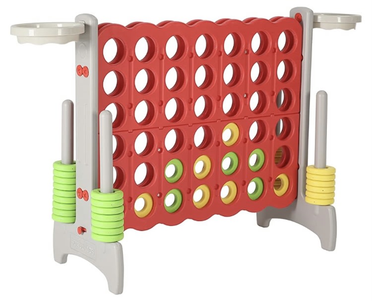 This is an oversized version of the classic board game. Get four of the same color in a row to win!
