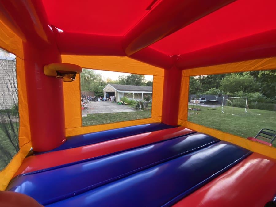 Our 15x15 Jumbo Bounce House is perfect for larger parties that need a universal, classic color themed bounce house! This bounce house includes a basketball hoop.